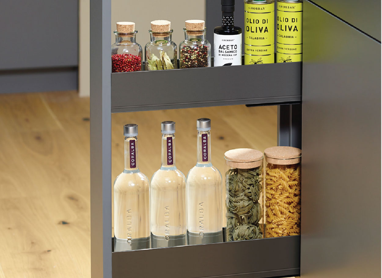 Pull out spice for cabinets 150mm wide, 720mm high, mounted to the right only, with Anthracite Style trays
